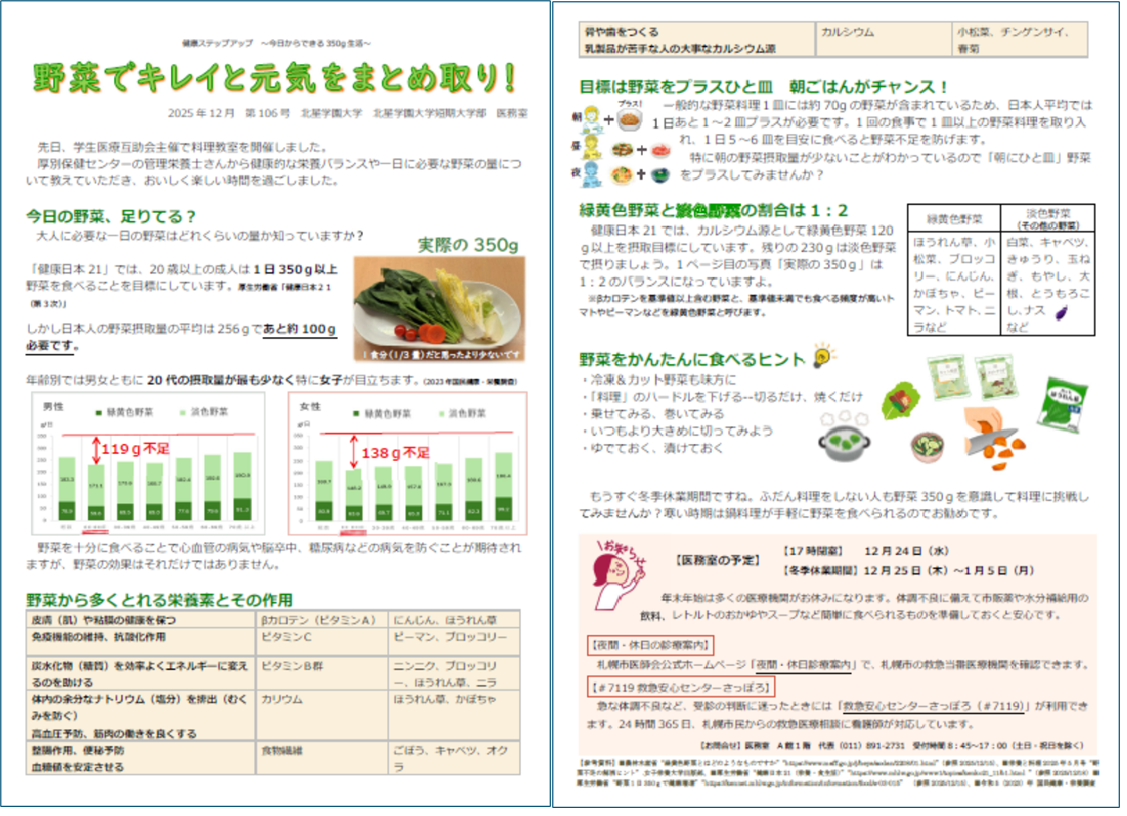 【医務室】 A館1階 電話:011-891-2731(代表) 受付時間:8時45分~17時00分